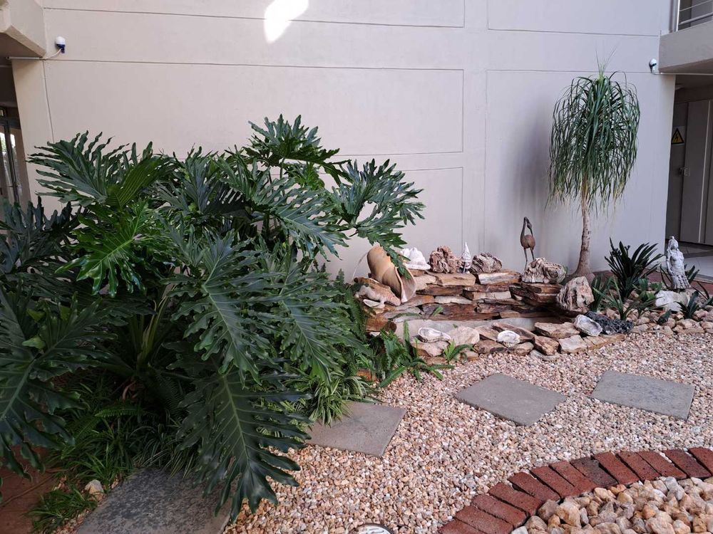 Looking for a safe and friendly community? Here we offer a cozy two bedroomed, 1 bathroom, open plan kitchen / lounge with balcony walking out into the surrounding garden in a tranquil environment. There is a Restaurant, High Care Medical Facility, Dentists, Medical Doctors, Chiropractors, Pharmacy, Library, etc on site. This specific unit also has a garage plus a covered parking available. Residents must be over 50 years of age.