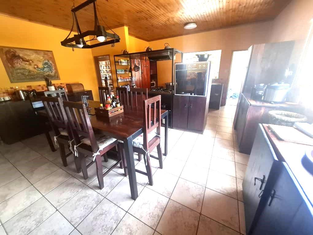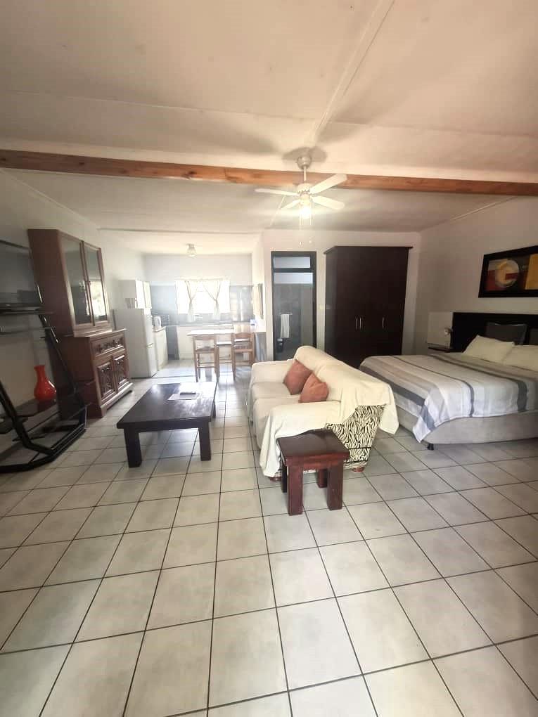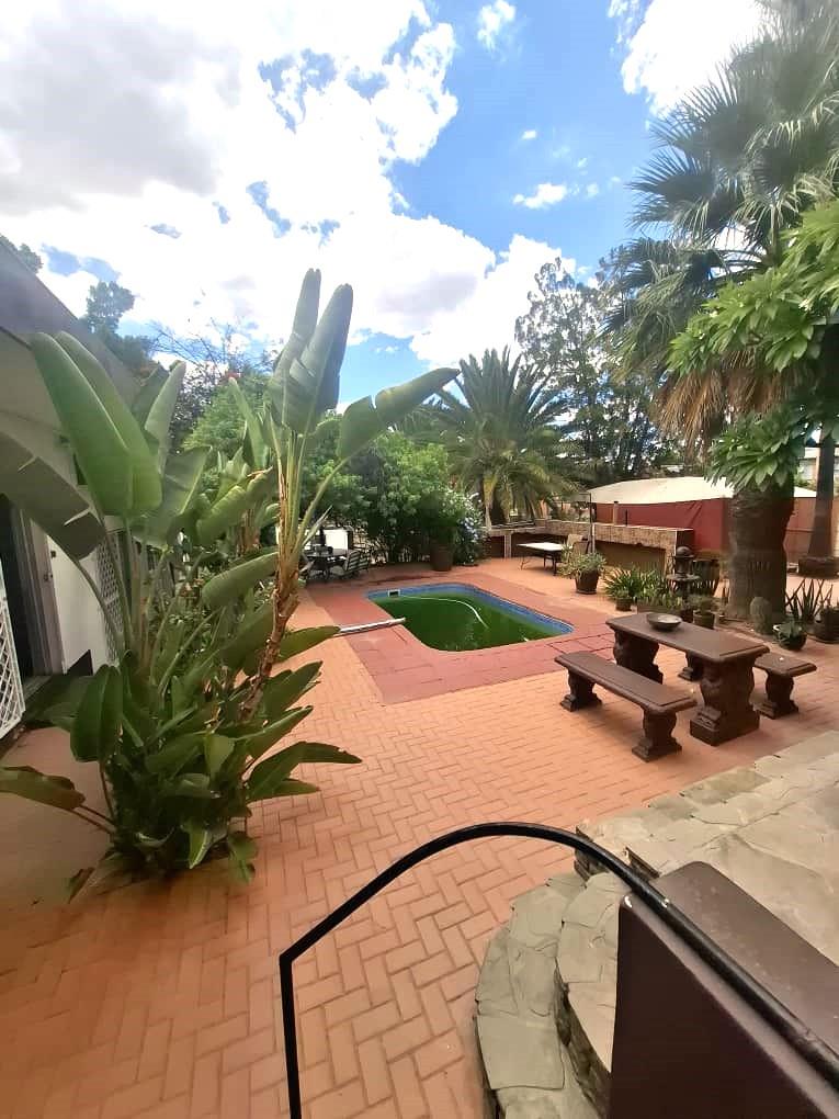 This spacious property on an Erf of 1434 square meters is perfect for large family or to be operated as a Guesthouse or Air B&B. It consists of a large Lapa, with built in Barbeque and Bar, perfect for Entertainment. There is also a pool with a separate entertainment area for larger functions. The main house boasts a large living space, dining room, separate office and a spacious kitchen, scullery and separate laundry. You will also find 2 separate bedrooms, each with their own bathroom. Further on the Erf you will find 3 One bedroom Flats, each with their own bathroom and kitchen area. On the second floor is a spacious 2 bedroom flat, with a veranda, kitchen, living room and bathroom. Outside you will find 4 undercover parking for 8 cars. Furniture of the property is available for sale.